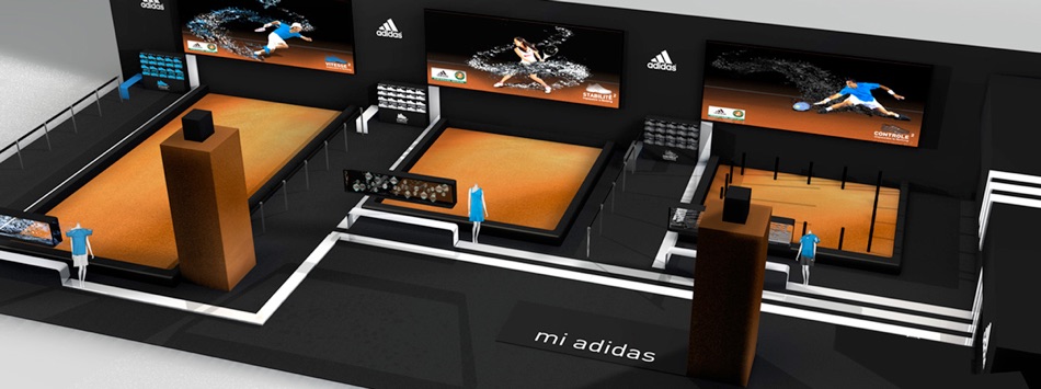 Architecture et design d’un événement pour Adidas, animation: ‘Nothing is impossible’ Showroom Roland Garros, Paris