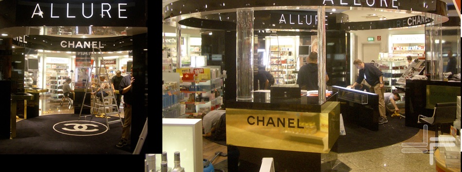 Architecture événementielle, luxe Chanel Podium Commercial : Aéroport 3 axes. Photo Francfort