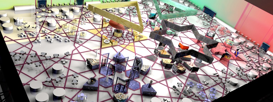 Architecture et design pour événement; Qatar National Days. Cultural village 2020. Doha Exposition: Arts plastiques représentant l’Europe, l’Asie, l’Afrique, l'Amérique et l'Océanie.